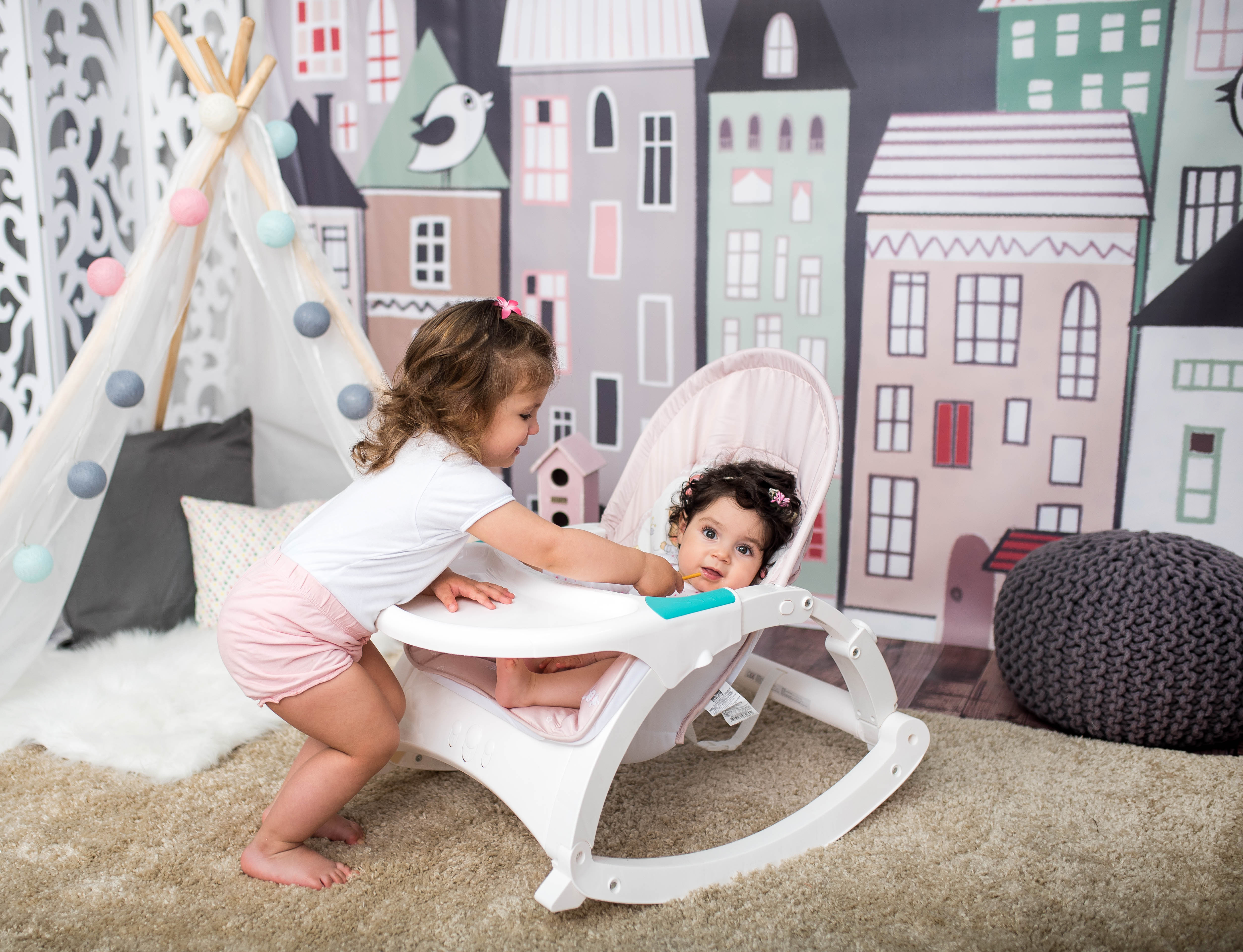 Fotoliul balansoar cu vibratii si muzica Enjoy este conceput pentru odihna si joaca. Sezutul si spatarul confortabile si reglabile, impreuna cu bara cu jucarii tentante, asigura odihna si relaxarea bebelusului, oferind astfel timp liber parintilor.