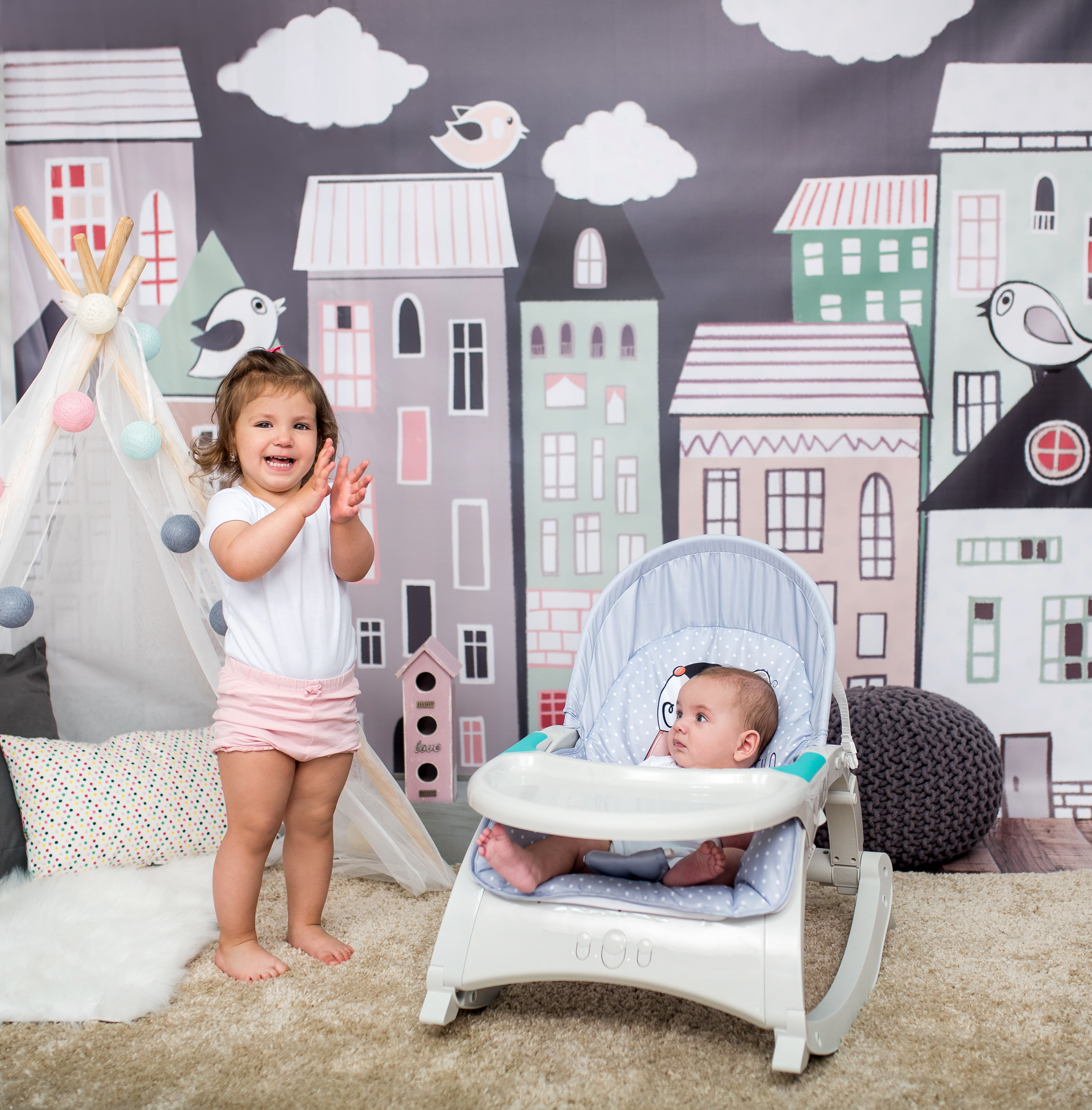 - Fotoliul este prevazut cu o arcada cu doua jucarii din plus. Arcada cu jucarii este detasabila.