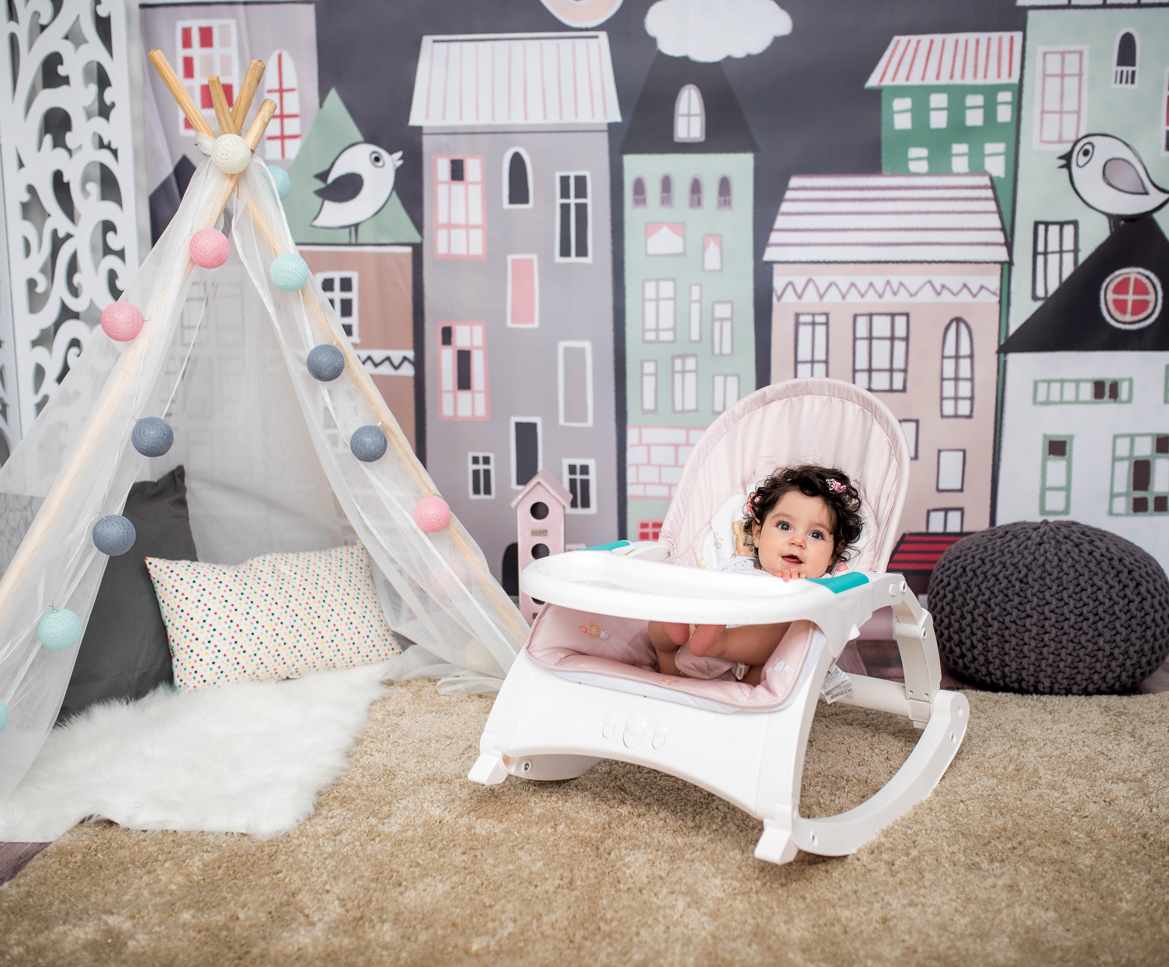 Fotoliul balansoar cu masuta, vibratii si muzica Alex este conceput pentru odihna, joaca si servit masa. Sezutul si spatarul confortabile si reglabile, impreuna cu bara cu jucarii tentante si tavita pentru servit masa sau joaca, asigura odihna si relaxarea bebelusului, oferind astfel timp liber parintilor.