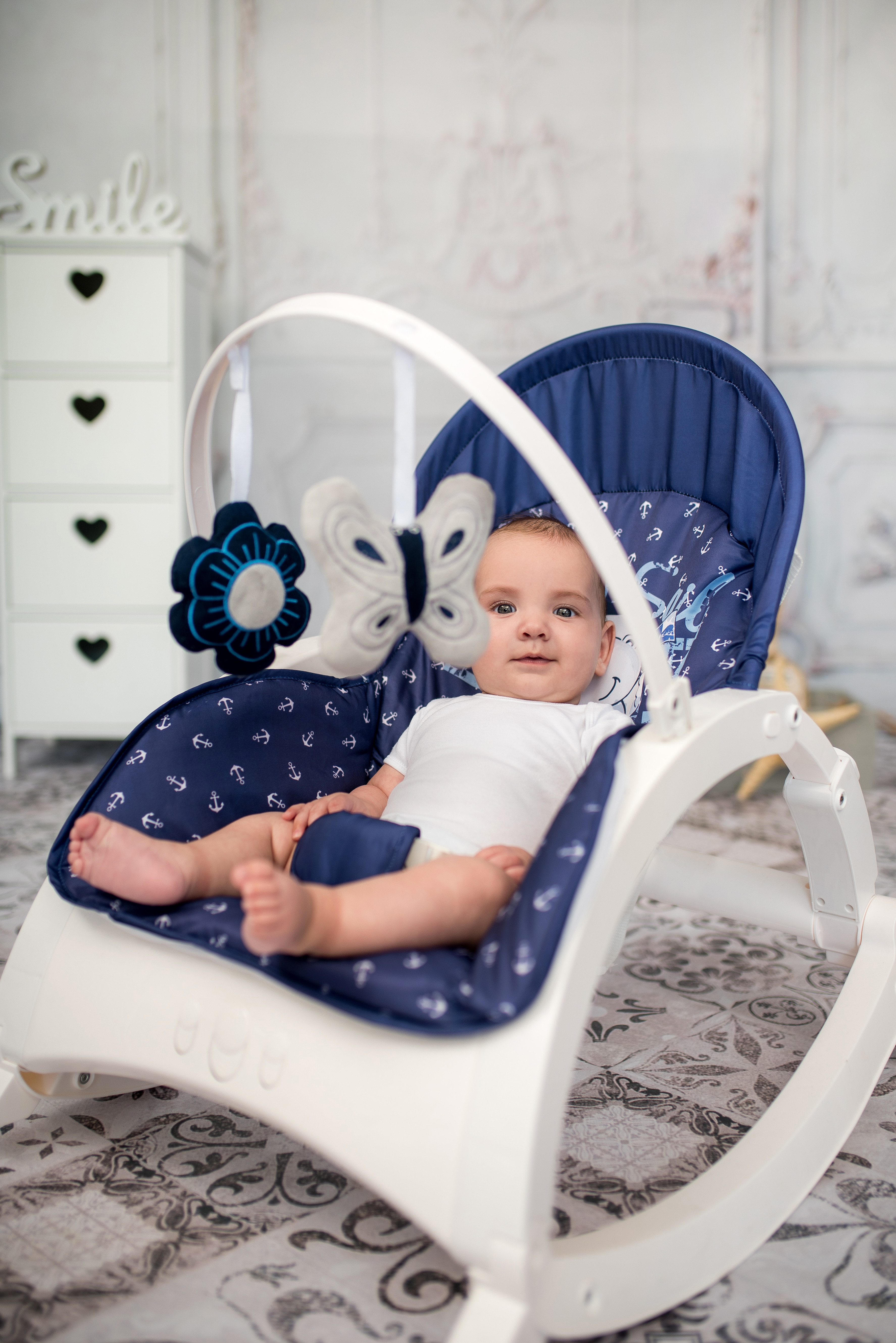 Fotoliul balansoar cu masuta, vibratii si muzica Alex este conceput pentru odihna, joaca si servit masa. Sezutul si spatarul confortabile si reglabile, impreuna cu bara cu jucarii tentante si tavita pentru servit masa sau joaca, asigura odihna si relaxarea bebelusului, oferind astfel timp liber parintilor.