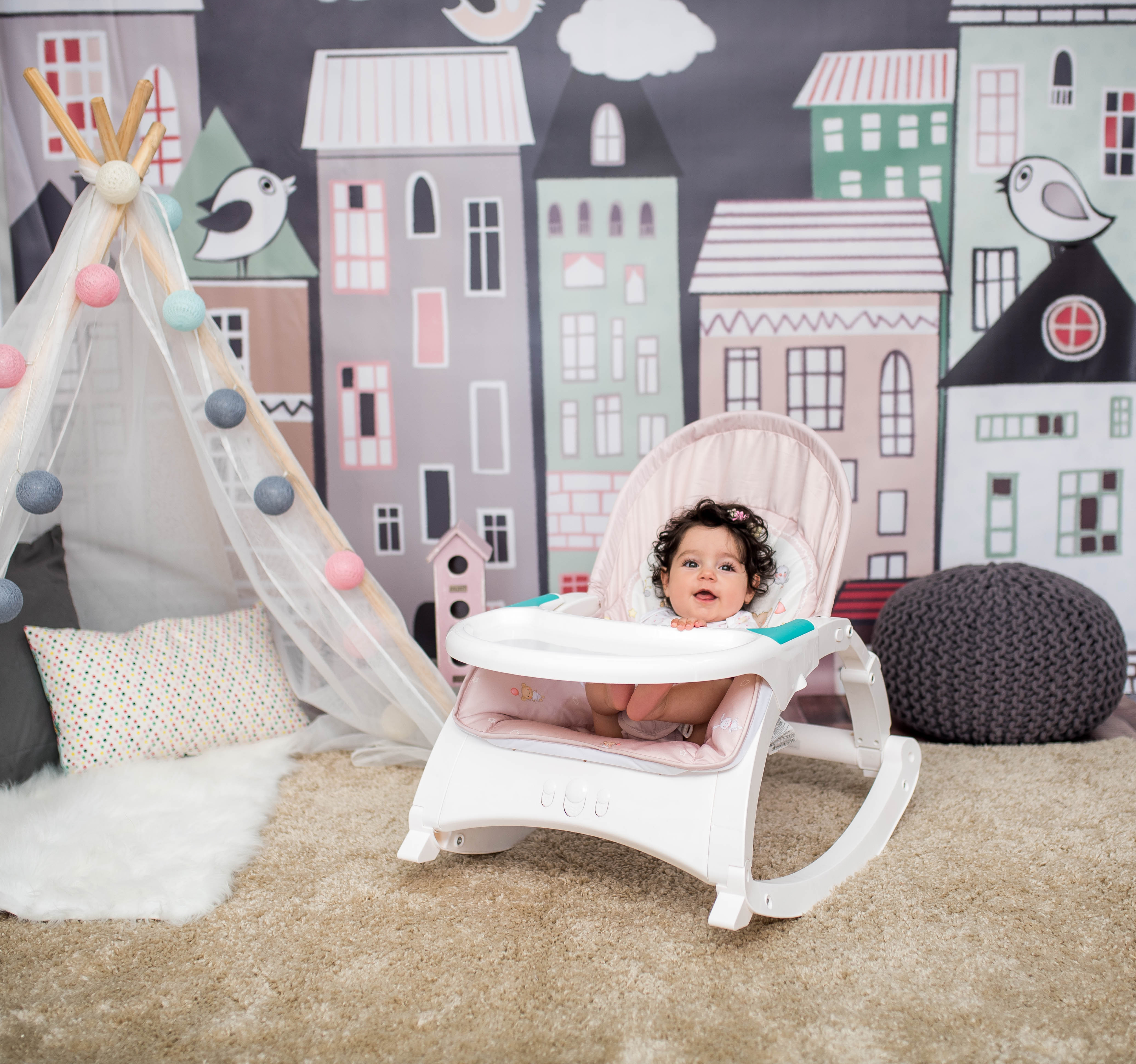 Fotoliul balansoar cu vibratii si muzica Enjoy este conceput pentru odihna si joaca. Sezutul si spatarul confortabile si reglabile, impreuna cu bara cu jucarii tentante, asigura odihna si relaxarea bebelusului, oferind astfel timp liber parintilor.