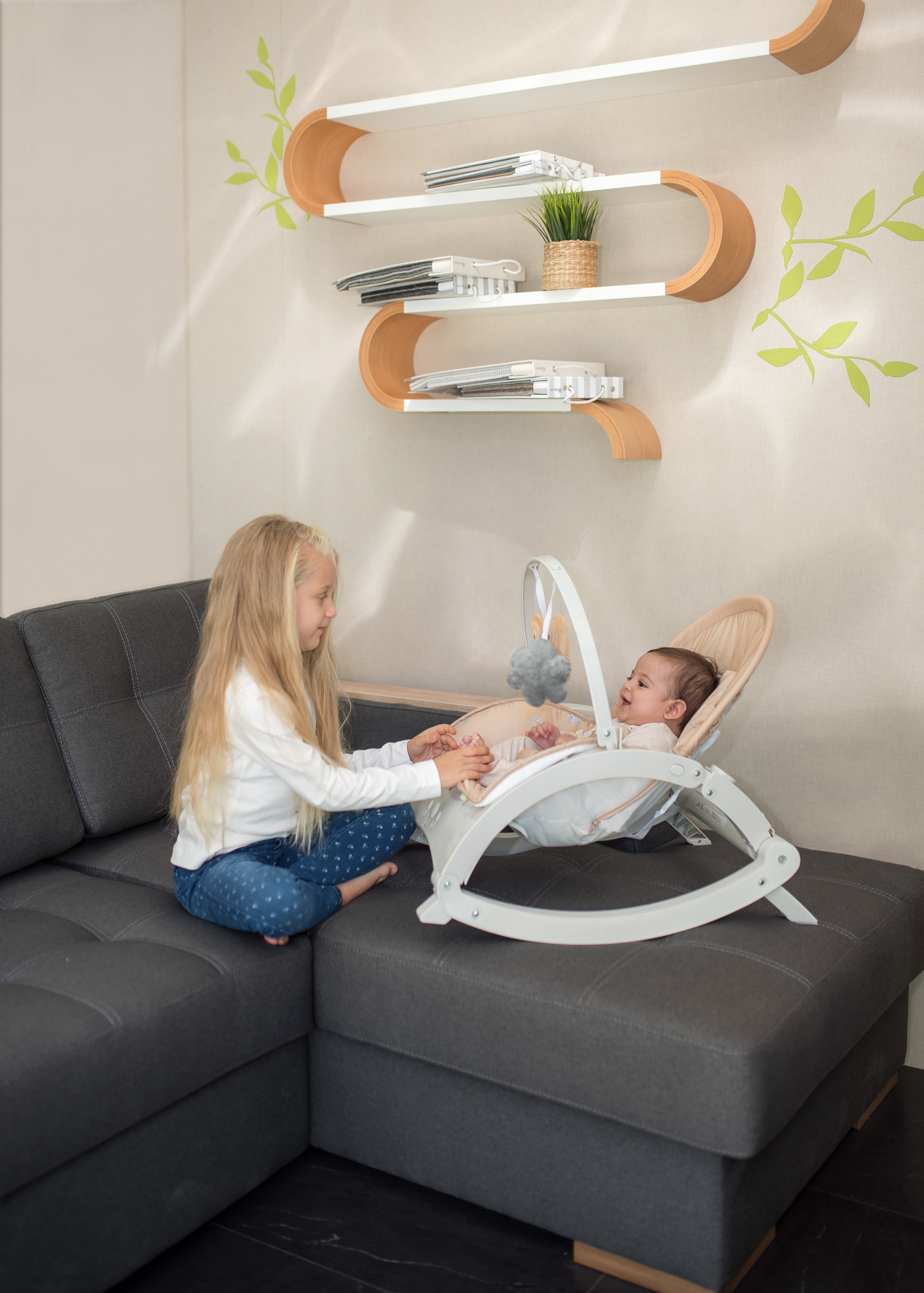 Fotoliul balansoar cu vibratii si muzica Enjoy este conceput pentru odihna si joaca. Sezutul si spatarul confortabile si reglabile, impreuna cu bara cu jucarii tentante, asigura odihna si relaxarea bebelusului, oferind astfel timp liber parintilor.