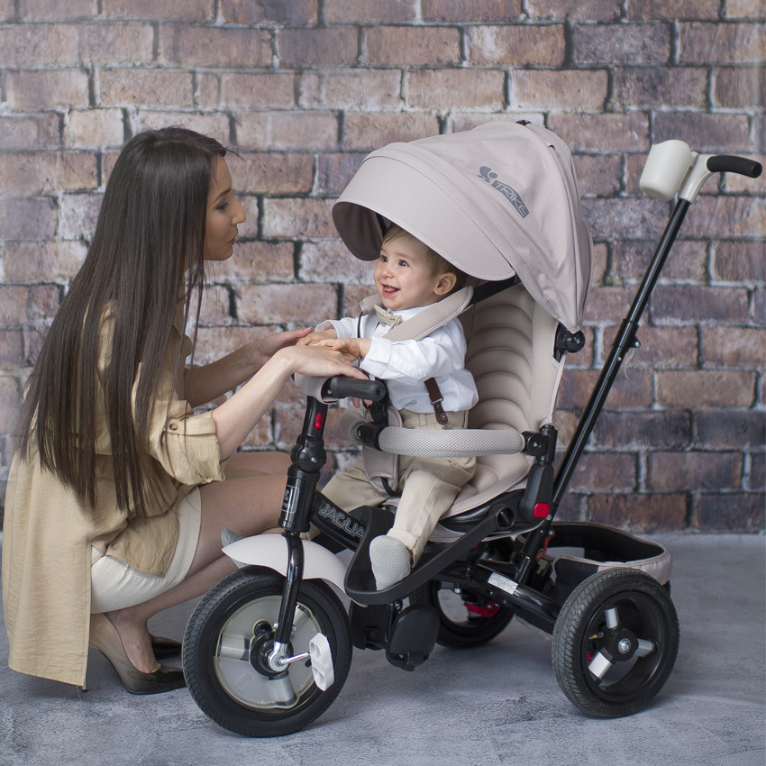 La acest model de tricicleta toate accesoriile (manerul pentru controlul direcţiei , bara de protecţie , copertina pentru soare) pot fi detasate atunci cand copilul creste, si astfel se transforma in modelul clasic de tricicletă, ce poate fi folosit pana la max. 20 Kg .