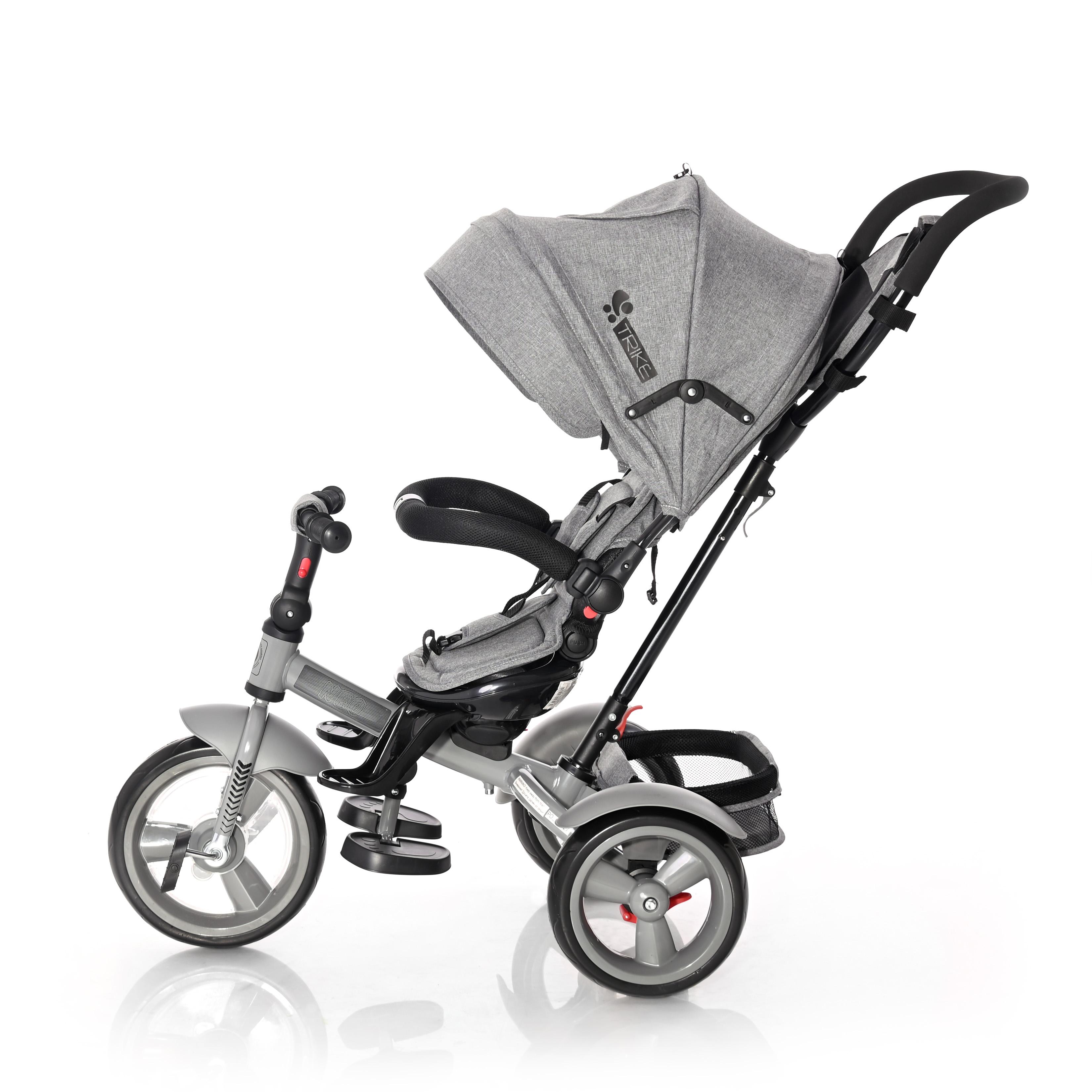 La acest model de tricicleta toate accesoriile (manerul pentru controlul direcţiei , bara de protecţie , copertina pentru soare) pot fi detasate atunci cand copilul creste, si astfel se transforma in modelul clasic de tricicletă, ce poate fi folosit pana la varsta de 3 ani .